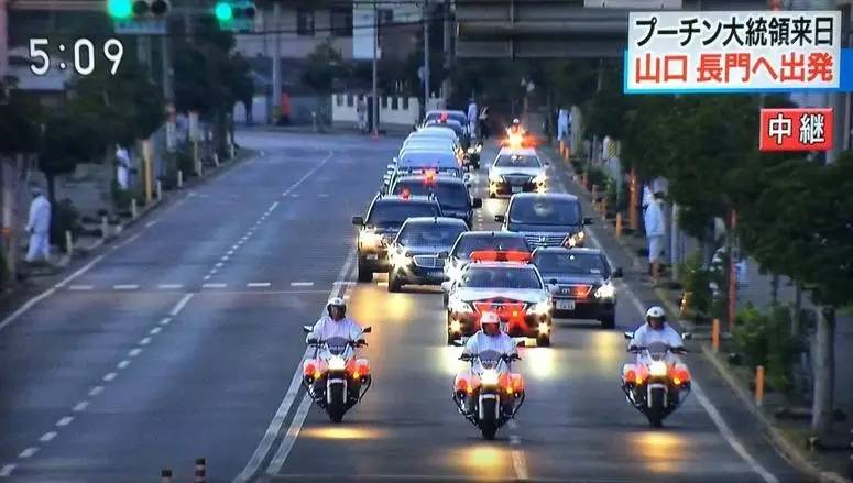 普京总统在日本警方护送下前往会面场所。