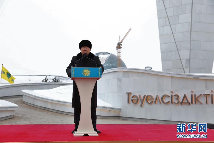 12月16日,在哈萨克斯坦阿斯塔纳,哈萨克斯坦总统纳扎尔巴耶夫出席独立纪念碑落成典礼。当日,哈萨克斯坦各地举行活动庆祝国家独立25周年。 新华社发(奥斯帕诺夫摄)