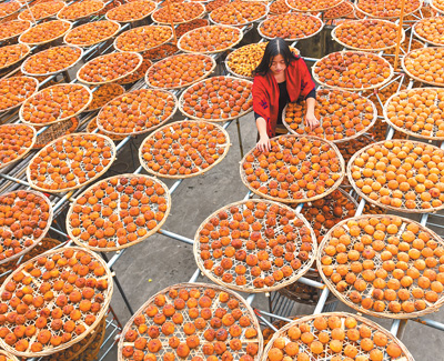 福建省泉州市安溪县城厢镇光德村有着悠久的柿饼制作传统,这里出产的柿饼肉质紧弹,食之甘甜,唇齿留香。每年12月,光德村都会进入柿饼晒制生产的最佳时期,家家户户屋顶上都会晒满金灿灿的柿子,空气中弥漫着清香,一派红火的丰收景象。