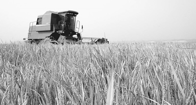 图为今年黄河渭南段荒地改造成良田,现代农业项目区水稻喜获丰收。