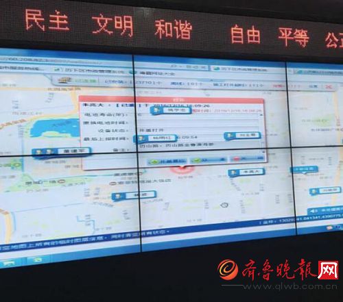 历下市政调度指挥平台上,能及时显示井盖报警信息。本报记者王皇摄