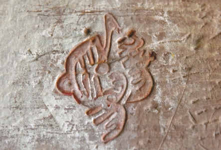 安岳县石羊镇的“大般若洞”,洞顶正中刻有一个大圆圈,圈中勾刻了一正一反两个人字。当地老百姓中流传着“两个人字颠倒颠,认倒算是活神仙”的说法。