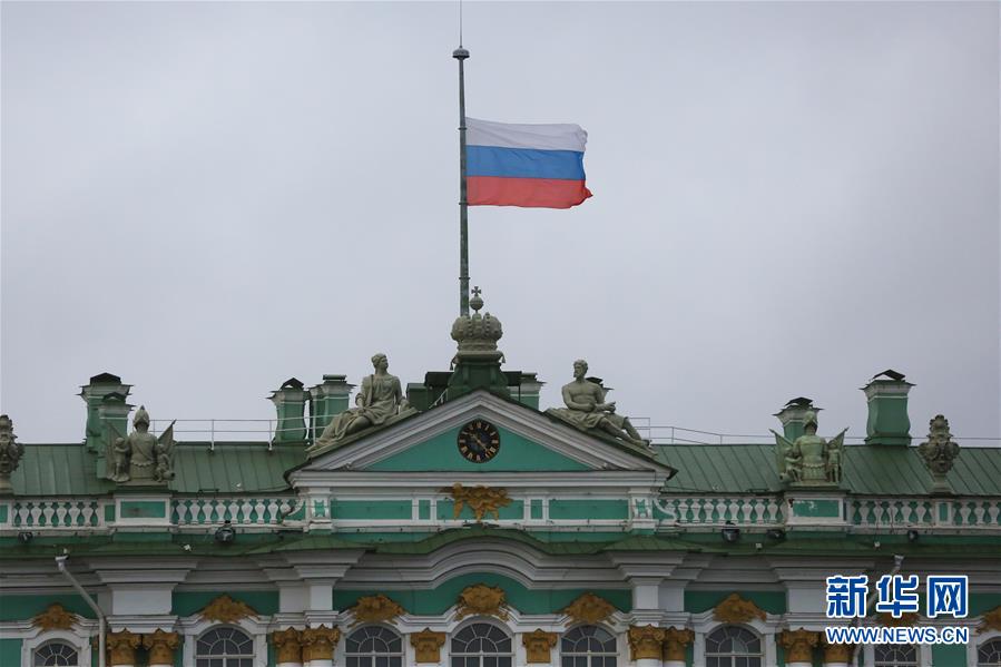 12月26日,在俄罗斯圣彼得堡,冬宫降半旗志哀图-154飞机失事遇难者。俄国防部所属一架飞往叙利亚的图-154飞机25日清晨在索契附近黑海海域坠毁,机上84名乘客和8名机组人员无人生还。空难发生后,俄总统普京宣布26日为俄全国哀悼日,并表示将彻底调查此次飞机失事的原因,竭尽全力帮助遇难者家属。新华社发(莫京娜摄)