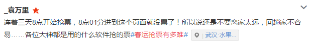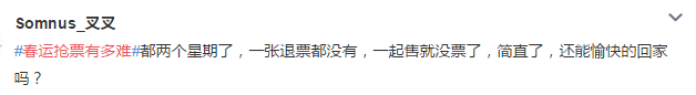 类似的网友留言一找一大堆,今天微博最火的话题之一就是:#春运抢票有多难#。