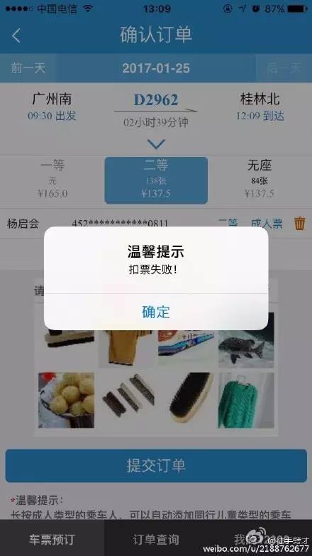 受到了一万点伤害的北青菌上网一搜,有类似情况的网友真不少,看看这位网友的买票截图,你就会知道,买一张火车票会遇到多少种失败的可能!