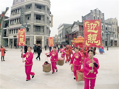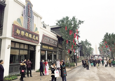 黄包车夫打扮整齐等待着客人、喜庆的迎亲队伍从街头迎面而来,豆花馆内亲眼见证豆子变身豆花的过程、手起锥落糖越砸越好吃……昨日,重庆两江国际影视城正式开街,重庆晨报记者也实地体验了一把“吃喝玩乐”!