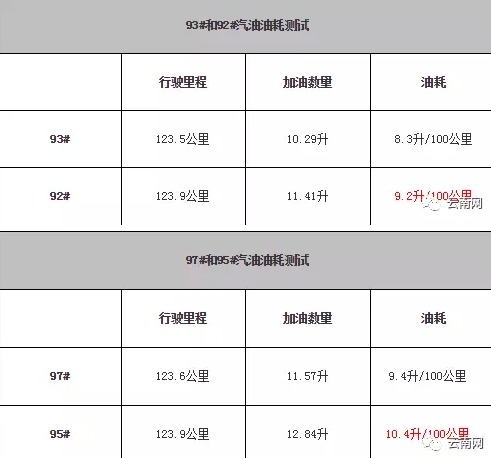 从实测结果看,使用92#比使用93#的油耗高了0.9升/百公里,使用95#比使用97#的油耗高了1升/百公里。