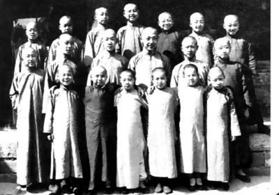 1938年19岁时与李墨璎结婚合影,居中者为校长金仲荪先生