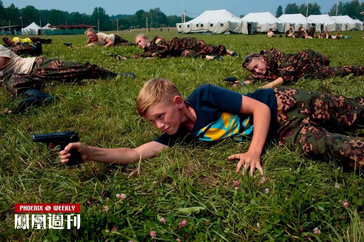 俄罗斯博罗季诺(Borodino)的训练营,孩子们身着传统的俄罗斯空军军服,练习用软气枪射击。这里的军事训练讲究在生活细节上回溯历史和传统,与俄总统普京的呼吁一脉相承。2012年,普京政府曾在俄法战争博罗季诺战役200周年的纪念中,让演员们全副武装地表演俄军击败拿破仑入侵的历史一幕,据称花费了超过70万美元。在当时距离莫斯科100多公里的纪念现场,普京在仪式上呼吁国民不分民族、宗教团结在一起,他强调一些地区的战火可能会蔓延并影响俄罗斯的完整。