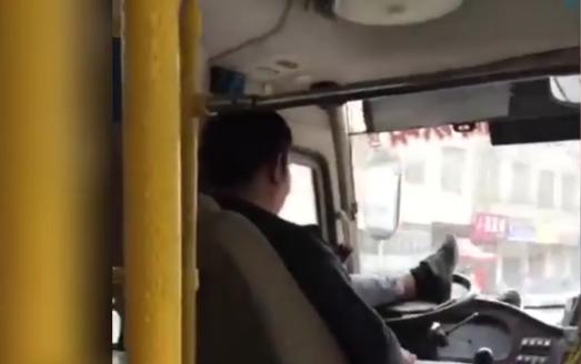 广东一公交司机上班玩手机用脚开车 已被警方控制