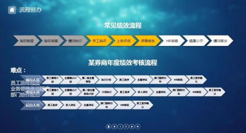 总体来说,企业要有一套标准的格式化绩效表单,能够清晰呈现给业务部门和员工。尽量让大家简单的理解,把所有人的流程、行为标准,评分规则在表单上内置好,最好是图形化,让员工可以一目了然的知道企业要我做什么,我每一个结点要做什么,做完以后下一个步骤是什么,让他们有更好的掌控能力。
