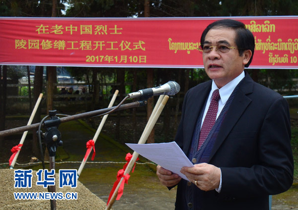 中国驻老挝大使关华兵在开工仪式上发表致辞说,修缮好、保护好在老中国烈士陵园,一直牵动着中国人民的情感。“修缮后的在老中国烈士陵园将成为对两国人民特别是年青一代进行中老传统友谊教育的新基地,激励我们为传承和弘扬中老友好而不懈努力。”