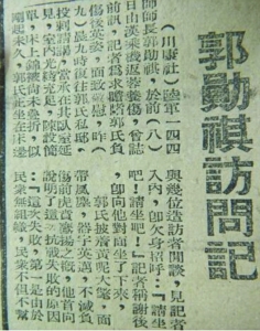 抗战时期,《新新新闻》刊载专访郭勋祺的报道。