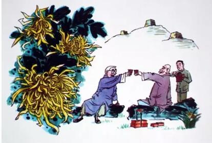 盛开的菊花,被人们采作菊花酒。菊花酒由菊花杂和黍米酿造而成,有清热解毒、明目祛风、抗菌消炎、抗衰老、调理血气的作用,而古人认为,秋浓时节配以菊花美酒,可以延年益寿。