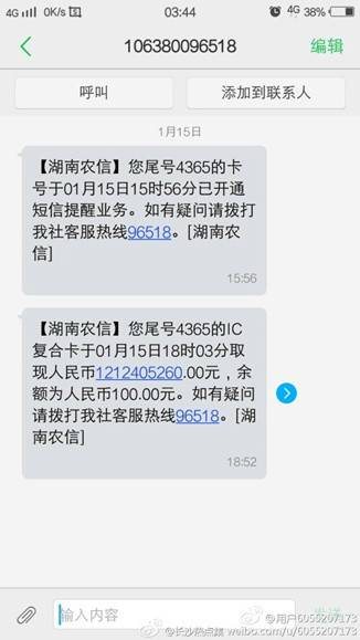 1月15日,刘先生到长沙望城区步行街上的农商银行开卡,不久便接到银行通知说误给他打了12个亿,刘先生随后回到银行将12亿全部返还。据了解,此事确系银行工作人员失误造成,而失误原因是其错将存折号码输成转账金额。