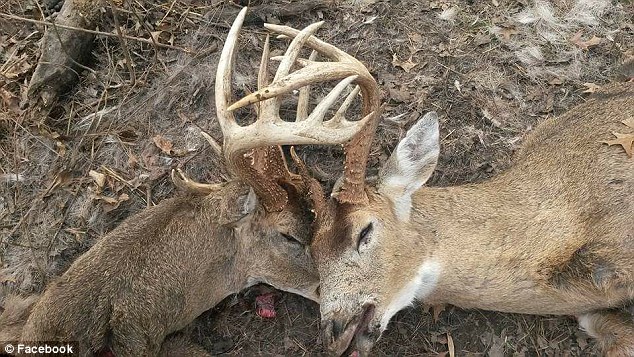 美国两雄鹿生死决斗后双双死亡鹿角仍交织(图)