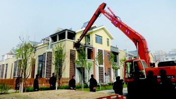 ◤执法人员集中拆除违建。(资料片)