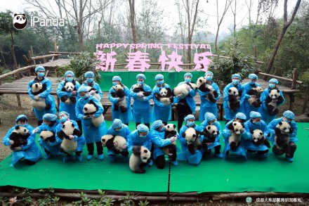 4.【“熊猫天团”聚首大拜年】1月20日上午10点30分,在成都大熊猫繁育研究基地,由2016年出生的23只熊猫幼仔组成的“熊猫天团”再次聚齐亮相。23位饲养员抱着天团成员,排成“2017”的字形,向全球人民送去新春祝福。超级网红“小灰灰”“福顺”等小团子首排吸粉,萌化众人。滚滚祝大家小年快乐!2017鸡吉向上!