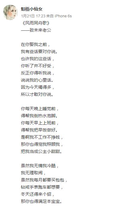 有一位有文采的小姐姐写出了致未来老公的《风雨同舟歌》