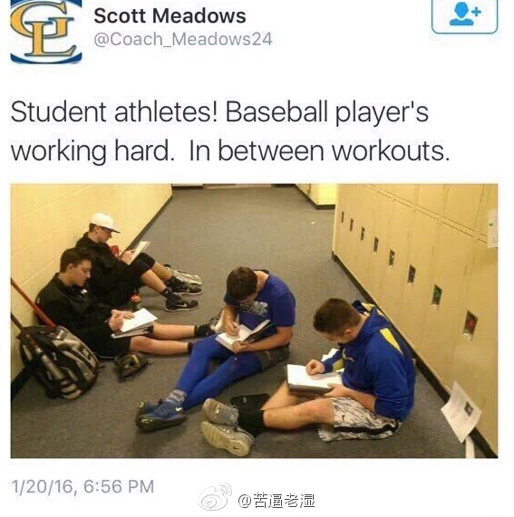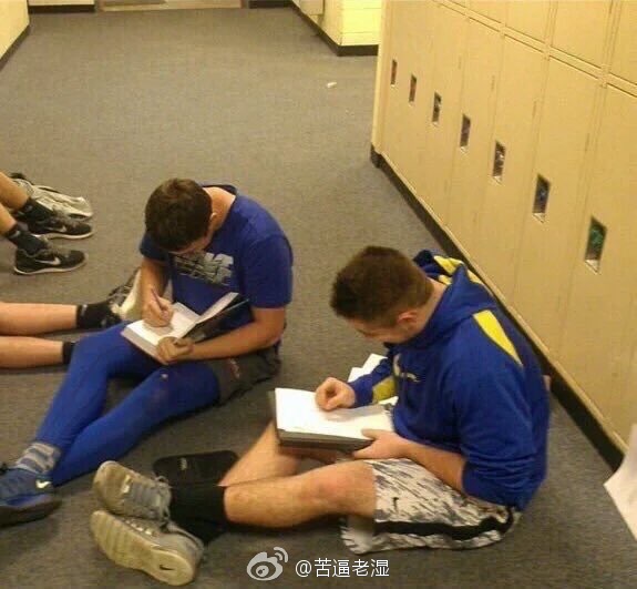 2.国外一学校的老师反应棒球队的学生不好好学习,于是棒球队为了证明自己有努力学习在推特发布了这么一条信息……【学校棒球队运动员!在训练期间也有认真学习!】然后有同学把图片进行了放大……(@苦逼老湿)