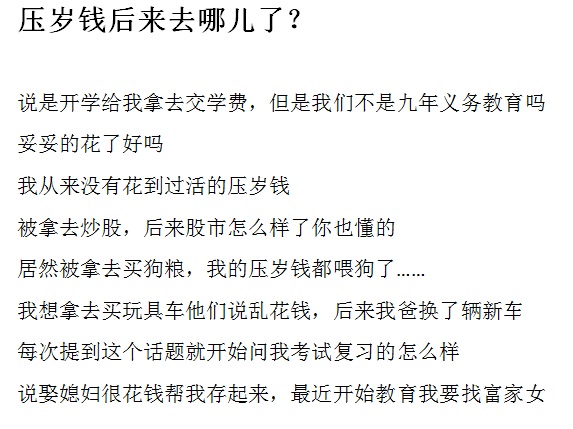 就算辛辛苦苦考了95,压岁钱最后不还是会被爸妈收走,还不如轻轻松松做个学渣