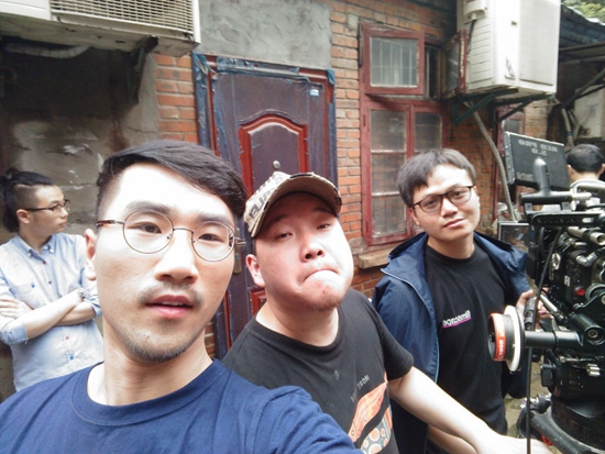 菅浩栋(左)、王法(中)、常标(右)在南京拍摄电影