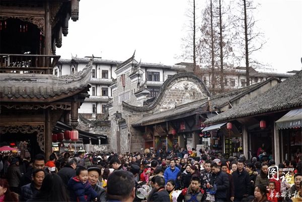 今天是大年初四,外出旅行和回乡的人们已纷纷踏上返程之旅。成都近郊的各大古镇都是人,从,众!洛带古镇更是游人火爆,一些自驾车的游客只能将车停在古镇外步行前往游玩。