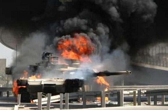 2004年4月10日,在通往伊拉克巴格达机场路上被击毁的M1A2坦克。