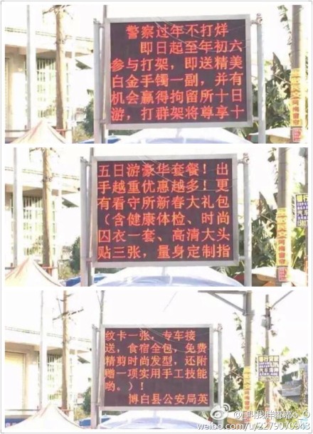【FUN眼看世界】1.来自派出所蜀黍的温馨提醒,这可能是我见过最耿直的劝架标语冲动是魔鬼,打架成本高打输住院,打赢坐牢,打平又住院又坐牢还得赔钱@法医秦明:打得不巧来找我。明白了,就跟别和老妈吵架一个