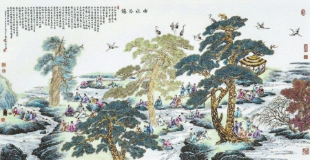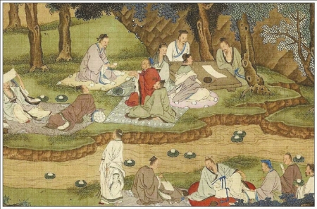 “行酒令”可以大俗也能大雅,市井百姓和文人雅士都热衷此道。四川宜宾有一个“曲水流觞”遗址,是宋代文人黄庭坚留下的,他当时是为了向晋代书法家王羲之致敬。“曲水流觞”乃中国文人雅集的标榜典范,因此流芳千古。源于公元1600多年前王羲之,与谢安、孙卓等42人开了一次特别“嗨”的派对,派对上诞生了中国史上最有腔调的“行酒令”。