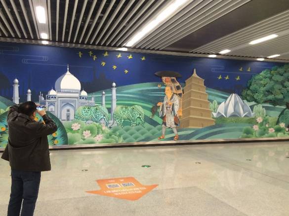 在西安地铁大雁塔站有这样一幅壁画,画面上有玄奘和大雁塔、印度泰姬陵,看到这样的壁画你会想到什么?有专家称两段历史相差一千年。