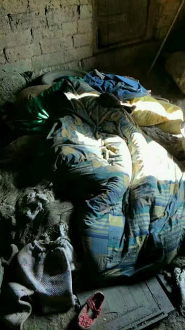 该爱心人士称,雷有保一家住的是土砖房,房外墙壁用多根树干支撑着。两张破床是屋内唯一的家具,被子就是一团破旧的棉絮。屋内铺有地铺,但盖的被子与垫子也是黑漆漆的破棉絮。附近邻居透露,雷有保与其哥哥基本上就睡在地上,和家里的猫狗睡在一起。他们一家人穿的衣服都是捡别人不要的,或是好心人送的。