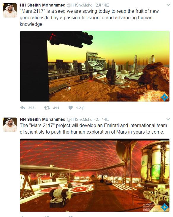 【环球网综合报道 记者 赵衍龙】 阿拉伯联合酋长国(UAE)副总统阿勒马克图姆(Sheik Mohammed bin Rashid Al Maktoum)周二(14日)在推特上宣布,最晚在100年后(2117年),要在火星上搭建一座人类可居住的小都市,也不排除在火星上盖一座迪拜塔。他说:“踏上其他行星一直是人类的长年梦想,而今后阿拉伯联合酋长国将站到梦想的最前端。”