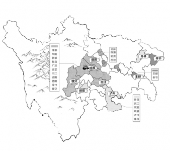 除成都府外,还有祖籍来自成都府辖县的,如成都、华阳、新都、郫县、广汉、金堂、内江、资阳;也有来自成都府属州辖县的,如绵竹、德阳;更有来自成都府以外各县的,如川西片区的雅安,川北片区的梓潼、岳池、射洪,川南片区的永宁、夹江、南溪、峨眉、泸州、隆昌,川东片区的丰都、奉节等。