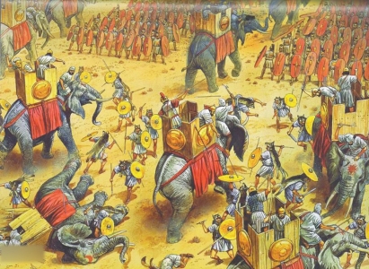 这里的大象,不是像我们今天在动物园看到的观赏性动物,而是用于战争的象兵。喜欢玩古代战争游戏的人知道,象兵是一种战斗力巨大的兵种,主要出自少数民族的战斗部队。