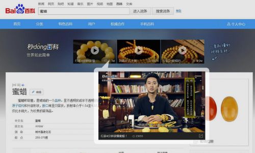 2016年百度百科与红掌柜签下合作协议,从16年底至今我公司已在百度百科“秒懂百科”栏目推出关于珠宝的视频系列20多个,视频囊括了我公司目前所经营的各类珠宝,如:翡翠、南红、红珊瑚、绿松石、蜜蜡、琥珀、和田玉、以及钻石、红蓝宝石、水晶、石榴石等各类彩宝、小叶紫檀等文玩,覆盖了云南翡翠、云南玉石、缅甸翡翠、翡翠手镯、南红玛瑙、南红、红玛瑙、和田白玉、和田碧玉、缅甸琥珀、老蜜蜡、天然水晶、海蓝宝石、祖母绿宝石等300多个词条,玩友们可在百度百科搜索相关词条就能看到由红掌柜牌创始人、珠宝鉴定师、珠宝设计师倪彬
