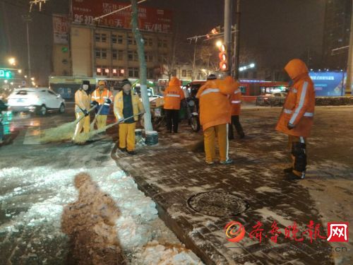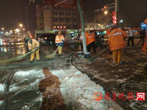 济南:清洁工已经开始扫雪了