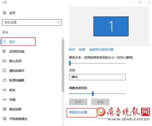 然后点击“设置”中的“高级显示”。