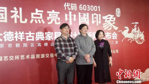 中新网2月23日电 22日,北京实创大德祥文化发展有限公司(以下简称“大德祥”)在中国艺交所举行“国礼点亮中国印象”大德祥古典家具设计院新闻发布会,一同见证大德祥红木家具设计院开启新的起点。大德祥古典家具设计院创作的《中国印象》作为首个上线品种(603001),拉开了中国艺交所艺术资源交易中心的交易序幕。
