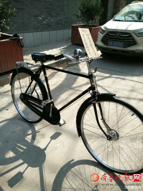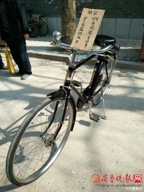 齐鲁晚报讯(记者 王若松 实习生 吴高寒)26日,网友“295016”在齐鲁晚报官方新闻客户端情报站爆料称,济南英雄山文化市场, 有一辆保养如新的老自行车摆在小马路上立牌转让,要价2800元。