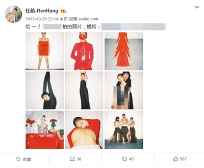 2016年10月,任航在微博发布的一组摄影作品。 网络截图