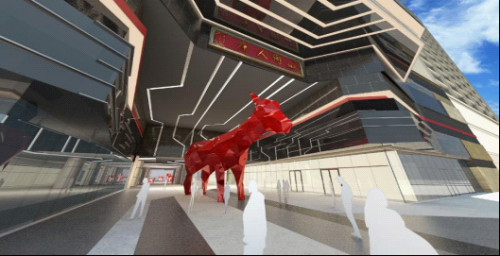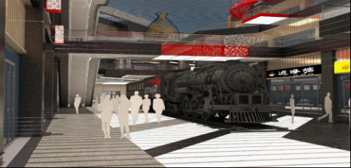 在场景布置上,团队考虑到唐山的历史背景,也充分还原了建筑的文化肌理。追溯到清朝末年,李鸿章曾在此地采用西法,开始了开平煤矿开采。在这里诞生了中国第一座机械化采煤矿井、第一条标准轨距铁路、第一台蒸汽机车、第一桶机制水泥,所以说唐山这块土地孕育了丰厚的工业文明。我们就是考虑到这点后打算在勒泰中心建造了一条唐人街,再现当时大量的雕塑及民俗景观。蒸汽机车、皮影戏灯、矿工雕塑、陶瓷瓦罐。创造这些文化资产,一是希望可以得到延续和传承,二则是它包含着人、自然与社会经历时代变迁之后的态度。