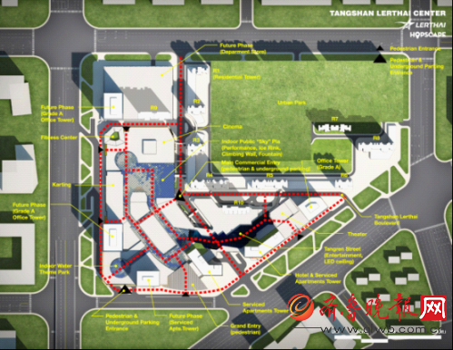我曾为诸多国家设计过标杆建筑。对于中国一直保持着一种神秘的探究感。在上次参与石家庄勒泰中心这个项目时也颇有感触。一方面由于中国文化博大精深,了解到每个地区的文化精髓需要深耕多年才能体会;其次在观念问题上,多年来乡土经济的发展,使生活在这篇土地上的人们活动半径一直保持着 “大院”的概念。后来在历史的行走中越来越多的人从这种生活单元中剥离出来,才发展为现在集约型的“社区”生活。在一线城市这种倾向已经非常明显。并且大多数的一线城市都采用了HOPSCA模式,比如说北京的华贸中心、金地中心、SOHO办公等诸多建筑均是采用这种模式。那么有人可能会问,在一线的城市适合,在唐山这样的二线城市也适合吗?