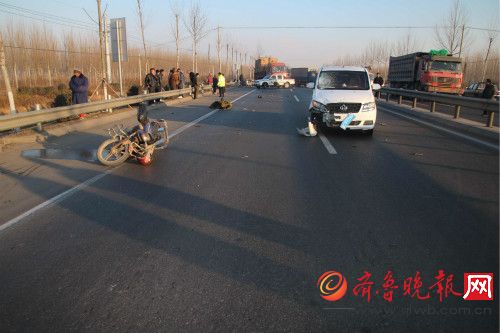 原标题:淄博:面包车撞摩托车致摩托车驾驶员死亡