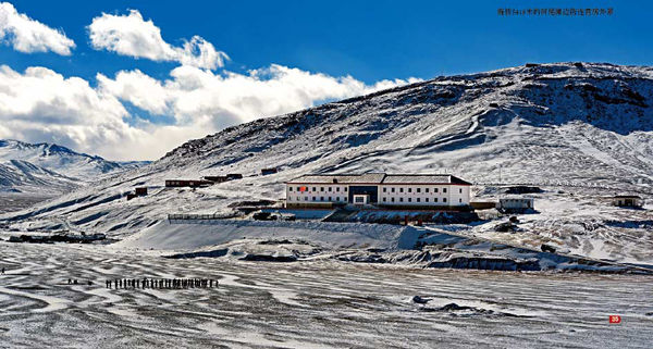新疆军区某边防团河尾滩边防连驻地海拔5418米,是我军海拔最高的哨所,连队担负着中印边境95公里边境线守防任务。这里,空气含氧量不足平原地区50%,人即便空手徒步,也相当于负重30多公斤;这里,每年封冻期长达10个多月,冬季气温达到-40℃。
