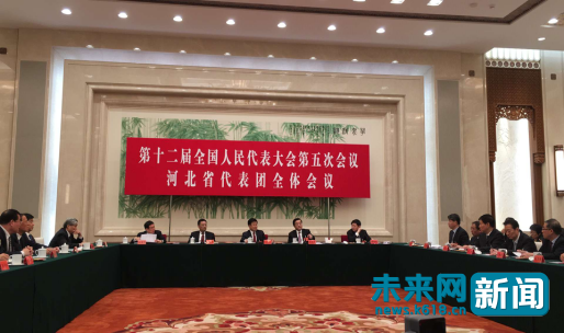图为十二届全国人民代表大会第五次会议河北省代表团全体会议 记者 贺卓辉 摄。