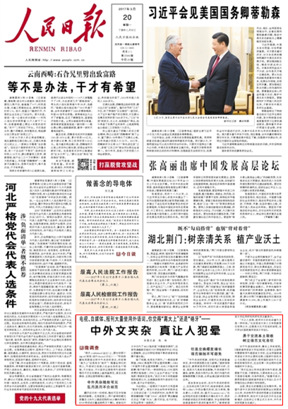 人民日报头版刊文批“中外文夹杂乱用”