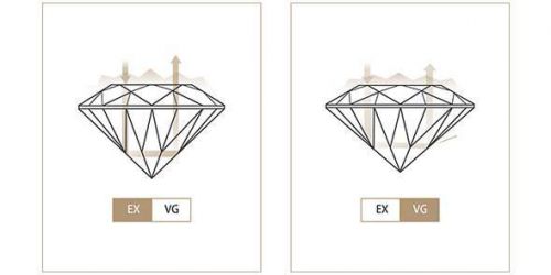 EX比率涵盖多个比例和角度指标,要求钻石的切割更为中正和协调。