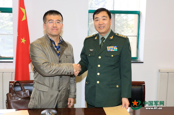 兰州军区善后办政工组组长张柯平会见甘肃金致诚律师事务所律师李正刚。万华锋摄