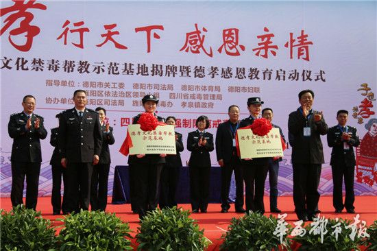 4月14日,“孝行天下,感恩亲情”德孝文化禁毒帮教示范基地揭牌暨德孝感恩教育启动仪式在四川省女子强制隔离戒毒所举行,四川省女子戒毒所的“德孝感恩”教育拉开序幕。未来三个月,省女所将举办包括读书月、“知孝感恩两件事”主题教育活动、“真情告白、感恩父母”书画展、“德孝文化”教育知识名家讲坛、德孝主题体验等活动,培养戒毒人员感恩回报意识,帮助戒毒人员感恩父母、亲人,修复亲情,为戒毒人员在所戒治,并搭建出所后社会支持系统奠定基础,实现以德育人、以文化人的目的。